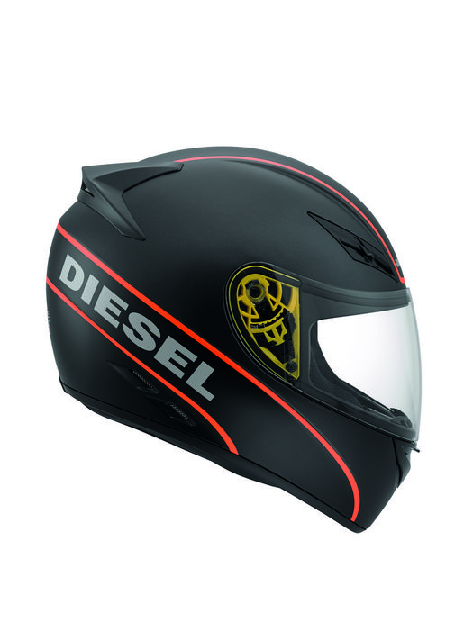 The Diesel range has now been enhanced with the addition of the new Full-Jack model, the first integral Diesel helmet for skilled customers and sports enthusiasts wanting typical Diesel originality and design.TECHNICAL DETAILSShell: painted hir-th resin.Fabrics: dri-lex with hygienic treatment.Visor: clear, anti-scratch and anti-fog polycarbonate street 8 visor.Shield mechanism: XQRS (extra quick release system), PVS (perimetrical visor seal).Retention system: micro-metric adjustment buckle.