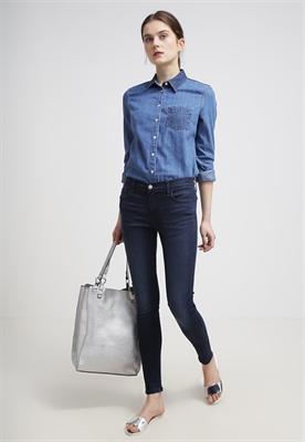contiene partes no textiles de origen animalLargo:normalAjuste:ceñidosLargo entrepierna:74 cmMaterial/composición:vaqueroModelo, altura:178 cm, lleva la talla 27x30Ocasión:tiempo libreLargo exterior de la pierna:98 cmCierre:cremallera invisibleBolsillos:traseros, lateralesEstampado:unicolorCintura:normalMaterial exterior:55% algodón, 35% fibra de modal, 8% poliéster, 2% elastanoCuidados:lavar a máquina a 30°CNúmero de artículo:LE221N011-K12