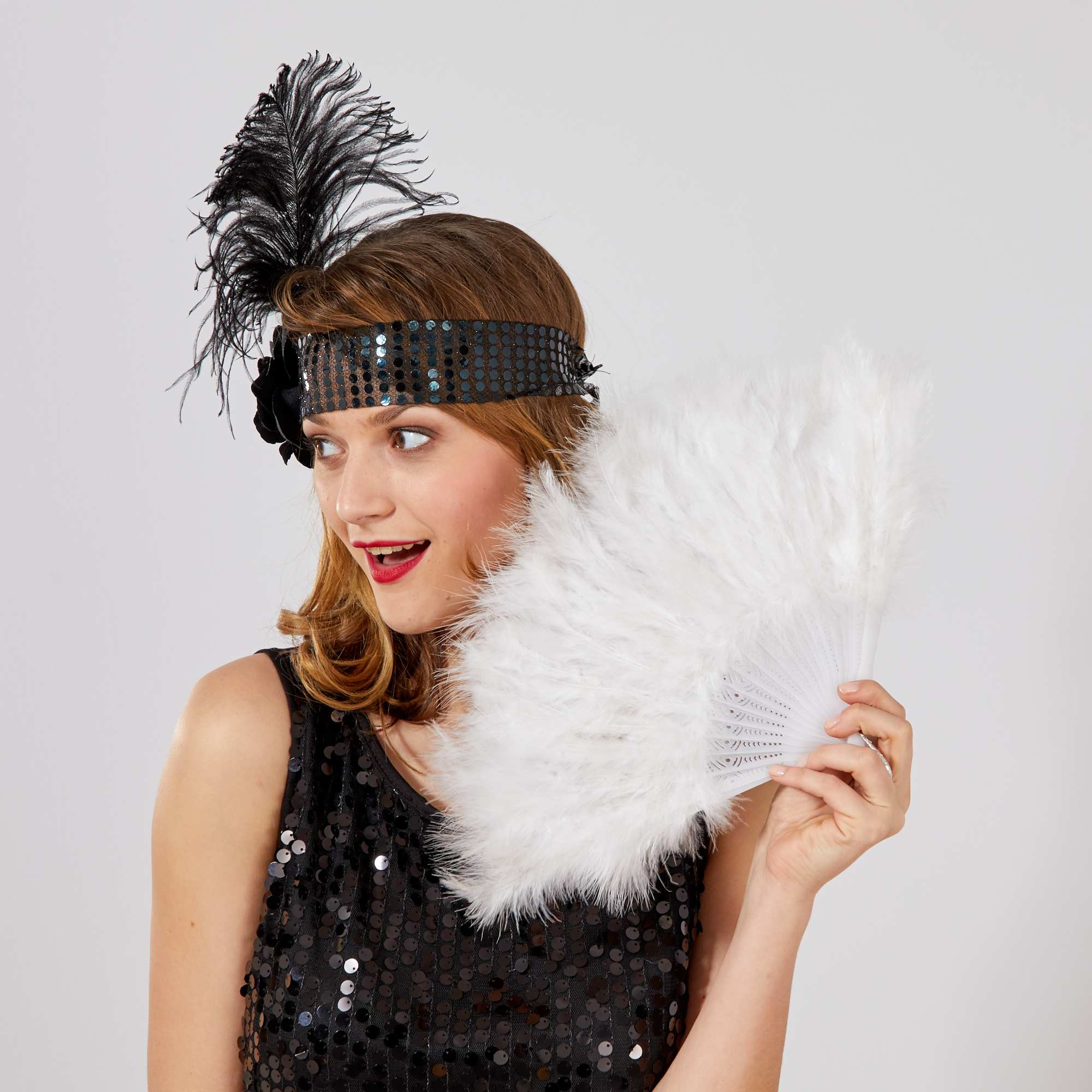 Exhibe un encanto misterioso en la noche jugando con este abanico de pluma.50% pluma,50% otras fibras