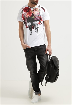 Largo:normalAjuste:normalMaterial/composición:jerseyModelo, altura:186 cm, lleva la talla MCuello/escote:cuello redondoOcasión:tiempo libreEstampado:con impresión de imagenLargo de la prenda:67 cmLargo de manga:cortaMaterial exterior:100% algodónCuidados:no utilizar secadora, lavar a máquina a 30°C, programa delicadoNúmero de artículo:DI122O01G-A11