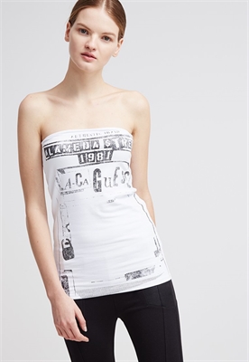 Largo:normalAjuste:ceñidosMaterial/composición:jerseyModelo, altura:179 cm, lleva la talla 36Ocasión:tiempo libreEstampado:estampadoLargo de la prenda:49 cmLargo de manga:hombros descubiertosMaterial exterior:95% algodón, 5% elastanoCuidados:lavar a máquina a 30°C, programa de lanaNúmero de artículo:GU121D06S-A11