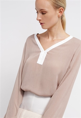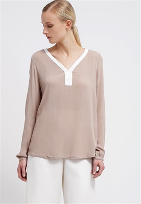 Largo:normalAncho de la espalda:38 cmModelo, altura:179 cm, lleva la talla 36Cuello/escote:de picoEstampado:unicolorLargo de la prenda:69 cmTransparencia:poco transparenteDetalles:costura bajo el pechoLargo de la manga:45 cmLargo de manga:manga largaMaterial exterior:100% viscosaCuidados:lavar a máquina a 40 °C, no utilizar secadora, programa delicadoNúmero de artículo:KA321E06W-B11