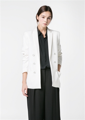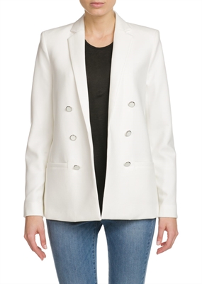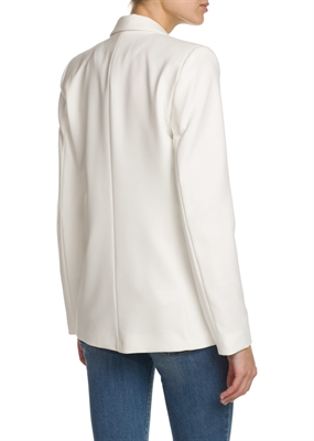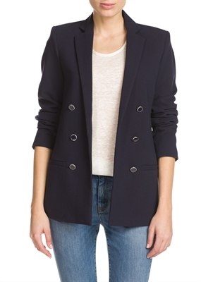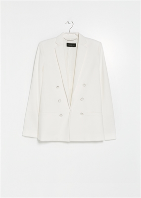 Americana de doble botonadura con hombros estructurados, solapas con muesca y dos bolsillos de ribete laterales.