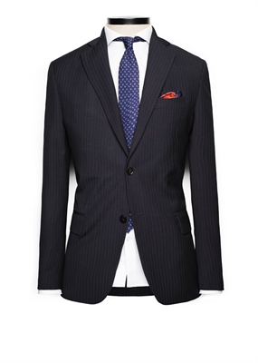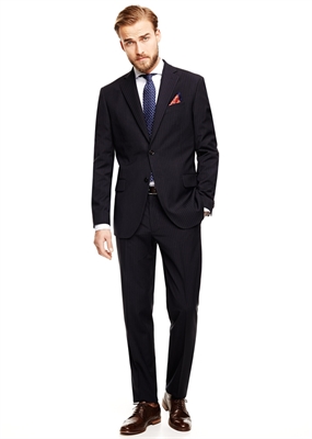Americana de traje de corte recto que pertenece a la línea Premium. Solapas con muesca, cierre de dos botones en la parte delantera y bolsillo de ribete en el pecho. Dos bolsillos de solapa laterales y bolsillo interior. Puños abotonados y doble abertura posterior.