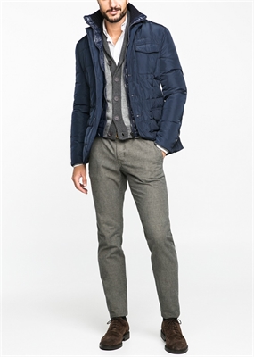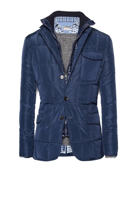Anorak impermeable con relleno de plumas y plumón que pertenece a la línea casual Blacksmith. Doble cuello convertible desmontable, cierre de cremallera y botones en la parte delantera. Tres bolsillos de solapa, puños abotonados, abertura posterior y bolsillo interior de cremallera.