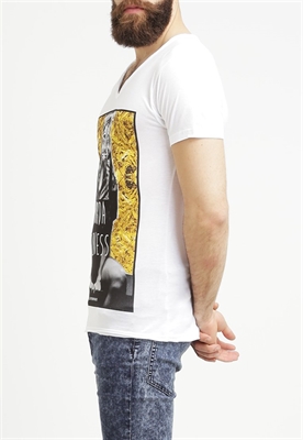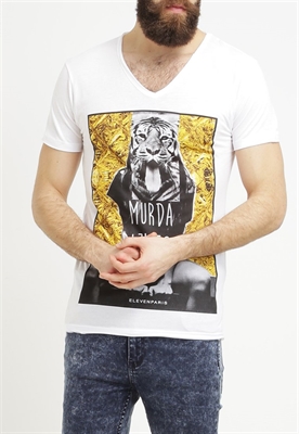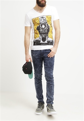 Largo:normalMaterial/composición:jerseyModelo, altura:188 cm, lleva la talla MCuello/escote:en V pronunciadoOcasión:tiempo libreEstampado:con impresión de imagenLargo de la prenda:72 cmLargo de manga:cortaMaterial exterior:50% algodón, 50% fibra de modalCuidados:lavar a máquina a 30°C, programa delicadoNúmero de artículo:E1322O02W-A11