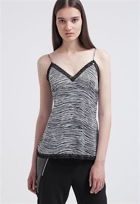 Largo:normalModelo, altura:180 cm, lleva la talla 36Cuello/escote:en V pronunciadoEstampado:print animalLargo de la prenda:63 cmLargo de manga:tirantes finosMaterial exterior:97% poliéster, 3% elastanoCuidados:lavar a máquina a 30°C, programa delicadoNúmero de artículo:GU121E02N-Q11