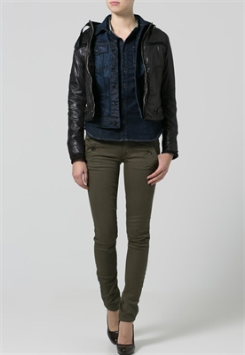 Largo:normalAjuste:ceñidosLargo entrepierna:80 cmModelo, altura:176 cm, lleva la talla 26x32Largo exterior de la pierna:96 cmCierre:cremallera invisibleBolsillos:traseros, lateralesCintura:bajoMaterial exterior:74% algodón, 24% poliéster, 2% elastanoCuidados:lavar a máquina a 40 °CNúmero de artículo:GS121A091-N00