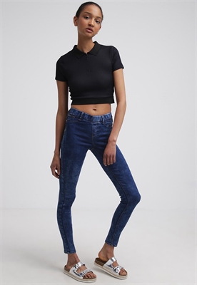 Largo:normalAjuste:jeggingsLargo entrepierna:77 cmModelo, altura:180 cm, lleva la talla 36Largo exterior de la pierna:101 cmBolsillos:traserosDetalles:cintura elásticaCintura:normalMaterial exterior:71% algodón, 27% poliéster, 2% elastanoCuidados:lavar a máquina a 40 °C, no utilizar secadoraNúmero de artículo:NL021N01G-K11