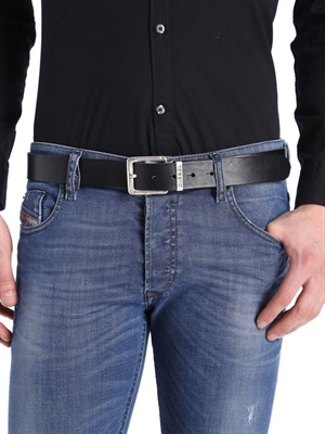 Made from cow leather, this 3.5 cm wide belt is available in a selection of buckles: shiny silver, classic, logo plaque.