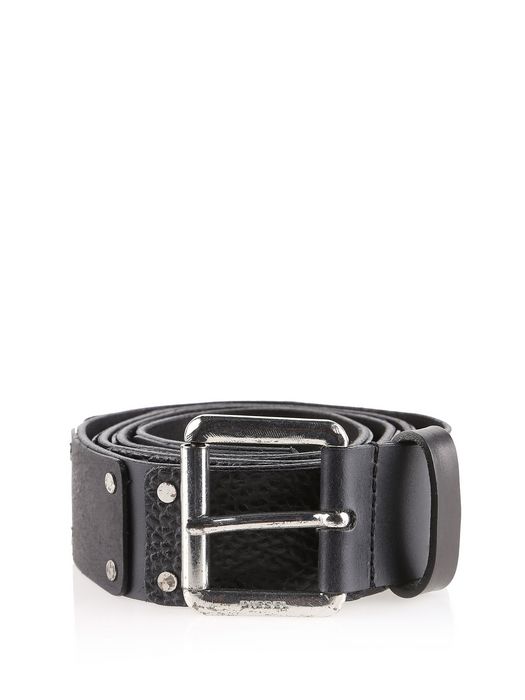 Diesel Heritage Belt.Taken from the Diesel Museum, this studded belt comprises different leather patches in shiny and opaque treatments. Buckle fastening, studs details.