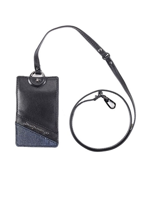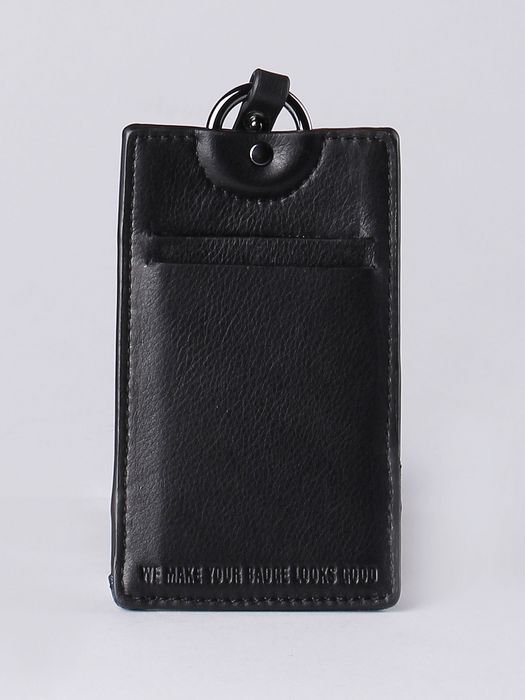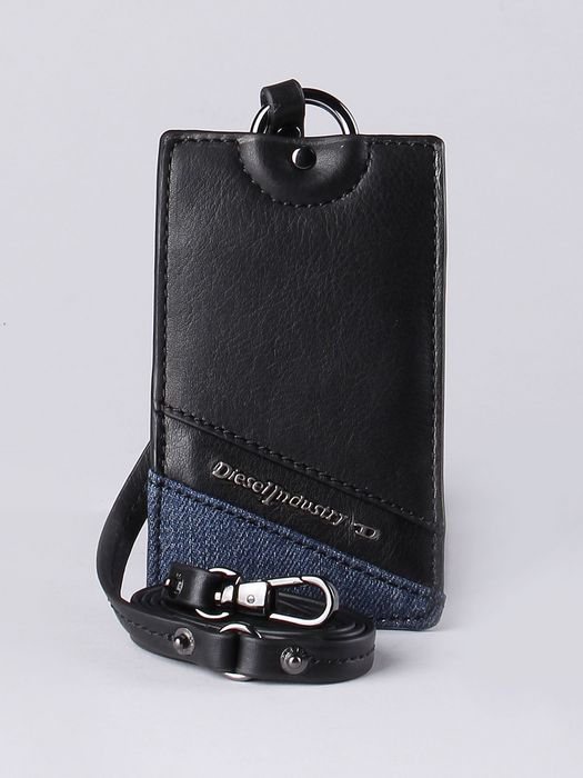 Card holder, leather and denim.This item's measurements are:Lenght 7 cm/ 2,7 inHeight 11,5 cm/ 4,5 inWidth 0 cm/ 0 in