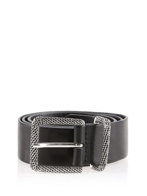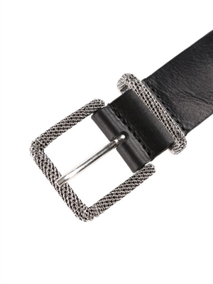 Belt, smooth and shiny leather, metallic details, buckle details.