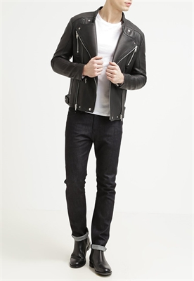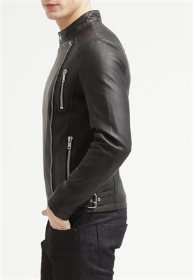 Largo:normalCierre:cremalleraRelleno:52% poliéster, 48% viscosaBolsillos:con cremallera, interioresAncho de la espalda:39 cmModelo, altura:188 cm, lleva la talla MEstampado:unicolorLargo de la prenda:69 cmCuello:alzadoLargo de la manga:67 cmLargo de manga:manga largaMaterial exterior:100% cueroCuidados:lavado de cuero profesionalNúmero de artículo:EN522J007-Q11