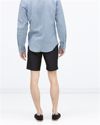 Bermuda jacquard marino. Cierre con botón y cremallera ALTURA MODELO: 187 cm