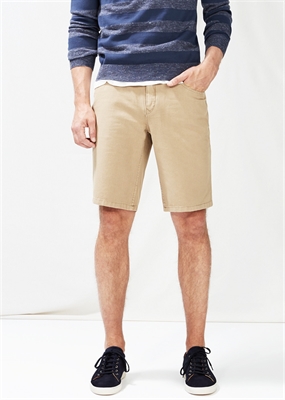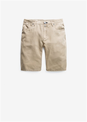 Bermudas en tejido canvas de algodón estampadas que pertenecen a la línea casual. Cinco bolsillos, trabillas, cierre de cremallera y botón.