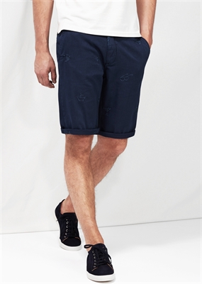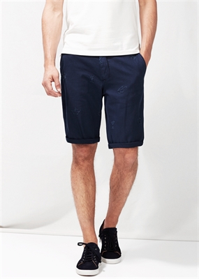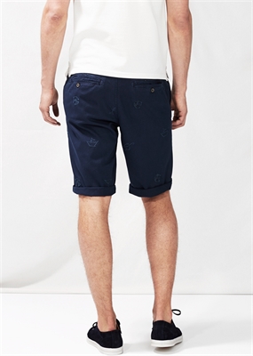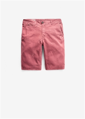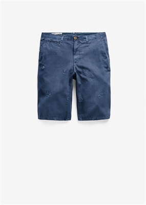 Bermudas de algodón con motivos bordados que pertenecen a la línea casual. Dos bolsillos laterales, bolsillo portamonedas y dos bolsillos de ribete con botón en la parte posterior. Trabillas, cierre de cremallera y botón.