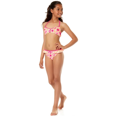 Vive el verano con color y estilo. - Bikini confeccionado en microfibra extensible - Sujetador tipo bandeau con volantes y botones - Tirantes finos regulables - Cierre trasero mediante clip de plástico - Braguita con refuerzo interior - Cintura y filos elásticosbanador: 82% poliamida,18% elastano banador: 82% poliamida,18% elastanoLavable a máquina.