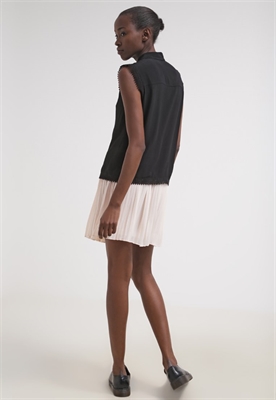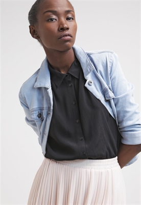 Largo:normalCierre:botónAncho de la espalda:32 cmModelo, altura:178 cm, lleva la talla SEstampado:unicolorLargo de la prenda:58 cmCuello:camiseroLargo de manga:manga extracortaMaterial exterior:100% viscosaCuidados:no utilizar secadora, lavar a máquina a 30°C, programa delicadoNúmero de artículo:EV421E00S-Q11