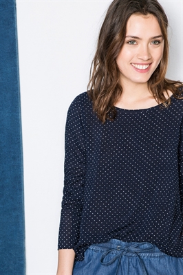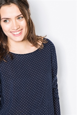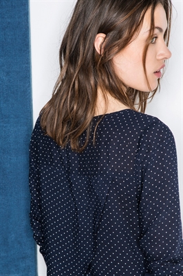 Blusa con estampado de topitos y espalda cruzada.- Manga larga.- Cuello redondo.