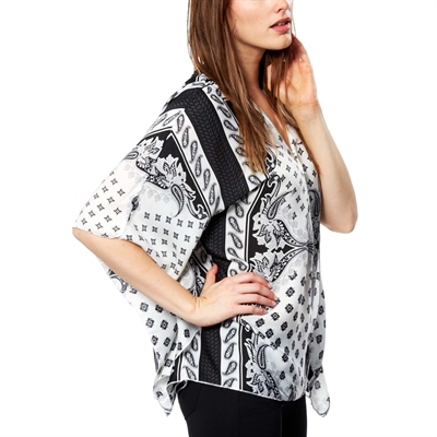 Hazte con esta blusa estampada. - Cuello con cremallera - Estampado de cachemir en blanco y negro - Confeccionada en gasa vaporosa - En la imagen, la modelo lleva una talla 38 y mide 1,77 m.100% poliesterLavable a máquina.