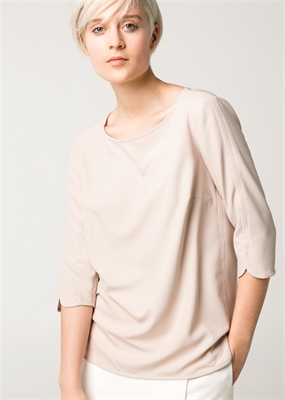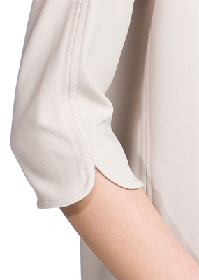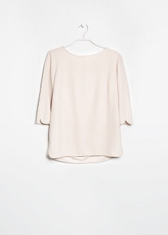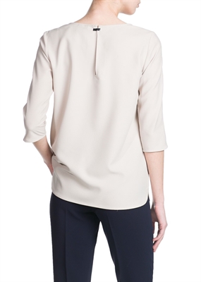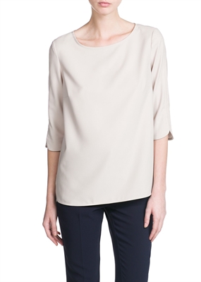 Blusa confeccionada en tejido crepé con cuello redondo, manga tres cuartos, cierre de lágrima en la espalda y terminaciones con aberturas laterales.