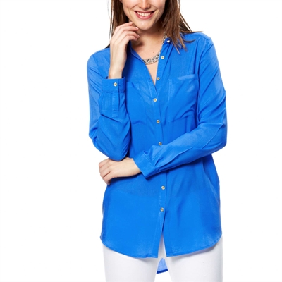 ¡Imprescindible! - blusa de gasa georgette - Manga larga con puños abotonados - Cuello clásico - Totalmente abotonada por delante - Con 2 bolsillos de parche en el pecho - Con caída detrás. Parte trasera unos 5 cm más larga - Largo de vestido: 86 cm aproximadamente. - Nuestra modelo lleva una talla 38 y mide 1,77 m.100% viscosaLavable a máquina.