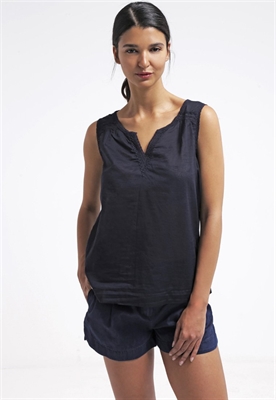 contiene partes no textiles de origen animalLargo:normalAjuste:normalAncho de la espalda:36 cmModelo, altura:179 cm, lleva la talla 36Cuello/escote:en V pronunciadoOcasión:tiempo libreEstampado:unicolorLargo de la prenda:62 cmTransparencia:poco transparenteDetalles:tira de botonesLargo de manga:sin mangasMaterial exterior:100% algodónCuidados:no utilizar secadora, lavar a máquina a 30°C, programa delicadoNúmero de artículo:MA321D082-K11