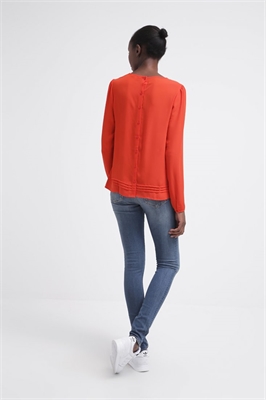 Largo:normalAjuste:normalCierre:botónAncho de la espalda:38 cmModelo, altura:178 cm, lleva la talla 36Cuello/escote:cuello redondoOcasión:tiempo libreEstampado:unicolorLargo de la prenda:61 cmTransparencia:poco transparenteDetalles:costura bajo el pechoLargo de la manga:65 cmLargo de manga:manga largaMaterial exterior:100% poliésterCuidados:no utilizar secadora, lavar a máquina a 30°C, programa delicadoNúmero de artículo:M3221E068-G11