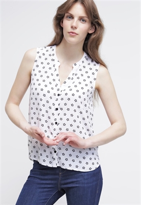 Largo:normalAjuste:normalCierre:botónAncho de la espalda:33 cmModelo, altura:180 cm, lleva la talla SCuello/escote:de picoOcasión:tiempo libreEstampado:estampadoLargo de la prenda:66 cmCuello:alzadoTransparencia:poco transparenteLargo de manga:sin mangasMaterial exterior:100% poliésterCuidados:no utilizar secadora, lavar a máquina a 30°C, programa delicadoNúmero de artículo:EV421E016-A12