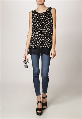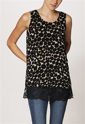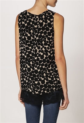 Largo:largoAjuste:normalAncho de la espalda:38 cmModelo, altura:178 cm, lleva la talla 36Cuello/escote:cuello redondoEstampado:de lunaresLargo de la prenda:71 cmLargo de manga:sin mangasMaterial exterior:100% poliésterCuidados:no utilizar secadora, lavar a máquina a 30°C, programa delicadoNúmero de artículo:P5621D03O-Q11