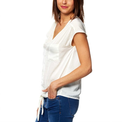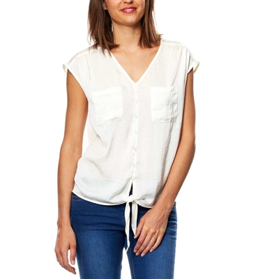 Fíjate en esta blusa fluida. - Cuello en V - Botones de fantasía en la parte delantera - Bolsillos en el pecho - Lazo para anudar por delante - Largo de espalda: 60 cm aproximadamente. - Nuestra modelo lleva una talla M y mide 1,77 m.100% poliesterLavable a máquina.