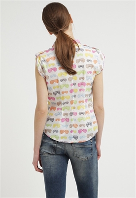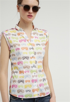 contiene partes no textiles de origen animalLargo:normalCierre:botónAncho de la espalda:35 cmModelo, altura:179 cm, lleva la talla 36Cuello/escote:de picoEstampado:estampadoLargo de la prenda:55 cmCuello:camiseroTransparencia:poco transparenteLargo de manga:manga extracortaMaterial exterior:100% algodónCuidados:lavar a máquina a 40 °C, no utilizar secadora, programa delicadoNúmero de artículo:VL421E03F-A11