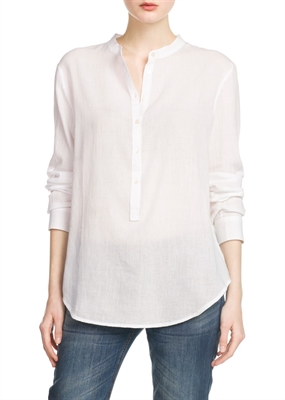 Blusón de algodón con cuello mao. Cierre de botones en la parte frontal, manga larga y puños abotonados.