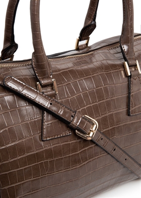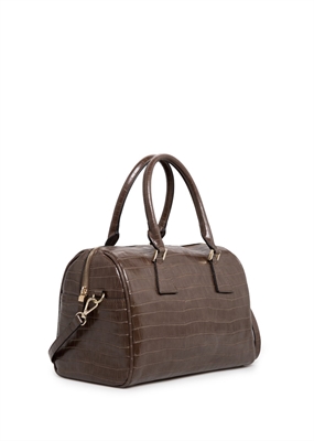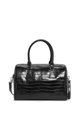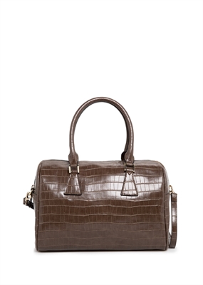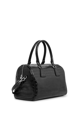 Bolso bowling en efecto piel. Doble asa superior, asa larga desmontable, cierre de cremallera y bolsillo interior de cremallera.