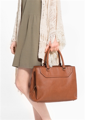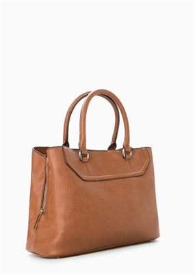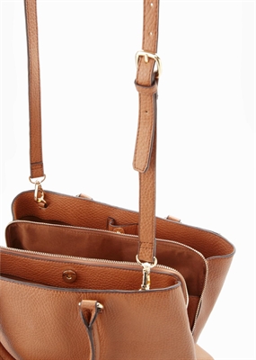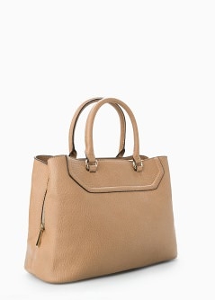 Bolso tote abatanado con doble asa corta y asa larga desmontable. Triple compartimento con cierre de botones a presión y cremallera, bolsillo interior.
