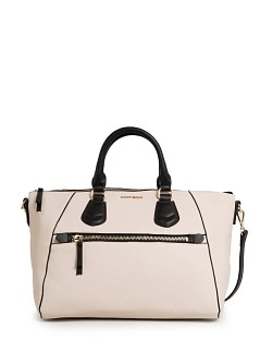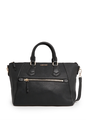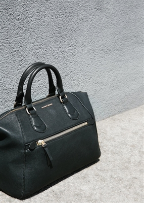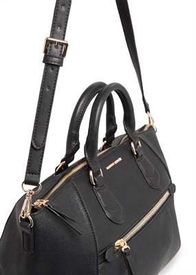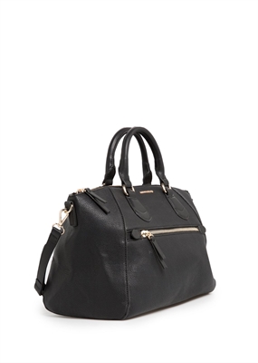Bolso tote en efecto piel abatanada con doble asa corta superior, asa larga desmontable y cierre de cremallera superior. Bolsillo exterior de cremallera.