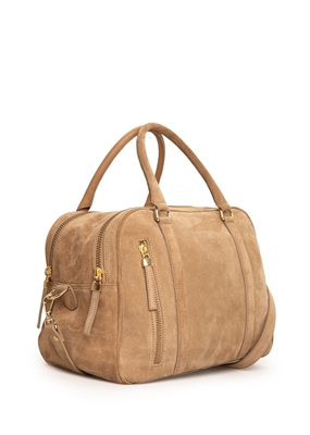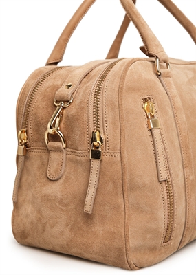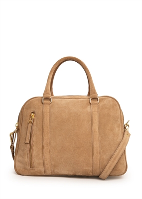 Bolso tote de serraje con doble asa corta y asa larga desmontable. Bolsillo vertical de cremallera, dos compartimentos con cierre de cremallera superior y bolsillo interior.