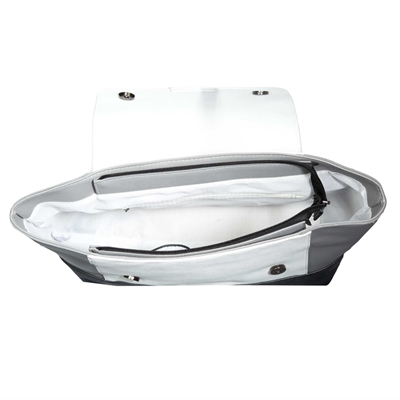 Fíjate en la solapa a contraste que le da un estilo muy gráfico en el que destaca una combinación original de 3 colores. - Bolso rígido - Cierre de cremallera bajo la solapa con 2 broches de presión magnéticos - 1 compartimento - Forro con 2 bolsillos de organización interiores + 1 bolsillo de organización interior con cremallera - Bandolera ajustable extraíble - Apliques a contraste - Piezas metálicas de protección debajo - Medidas: 36 x 26 x 12 cm aproximadamenteFORRO 100% poliester ENCIMA 100% sintetico