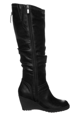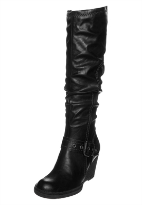 Plantilla:telaMaterial interior:telaForma del tacón:cuñaAltura del tacón:7 cmAltura de caña:40 cmAncho de caña:35 cmDetalle:hebilla, pieza elásticaCierre:cremalleraPuntera:redondaSuela:fibra sintéticaMaterial exterior:piel de imitación de alta calidadNúmero de artículo:M3111M00P-Q11