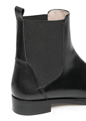 Botín chelsea de piel con punta, paneles elásticos laterales y tacón de madera cuadrado.