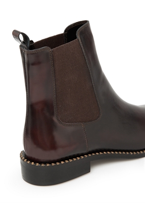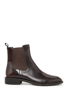 Botín chelsea de piel con paneles elásticos laterales y tacón de madera cuadrado.