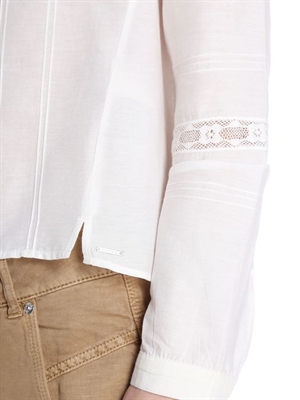 Crew neck, long sleeves, hand lace detail, embroidered panel insert.