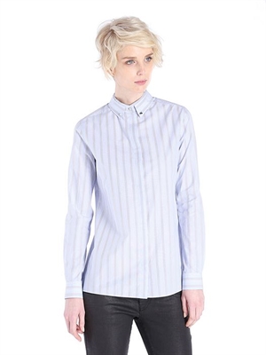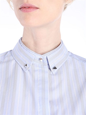 Yarn-dyed striped cotton shirt with hidden closure and stud buttons on the collar and cuffs.Botton down collar, long sleeves, buttoned opening.