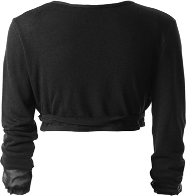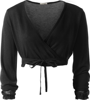 Cache-Cœur de mangas largas de lana y viscosa. Decorado con una aplicación de georgette en los puños y dotado de cierre con trenzado y lazo.
