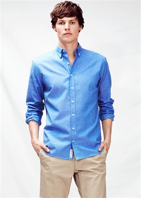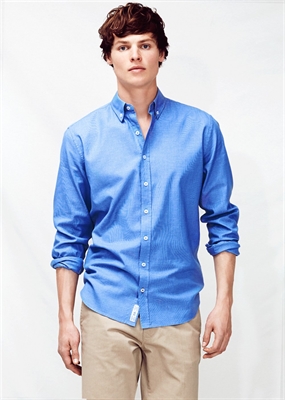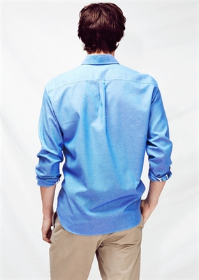 Camisa classic-fit en tejido de algodón con estructura que pertenece a la línea casual. Cuello abotonado, cierre de botones en la parte delantera, manga larga y puño redondeado con cierre de un botón.