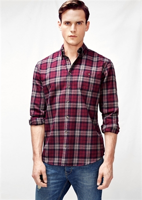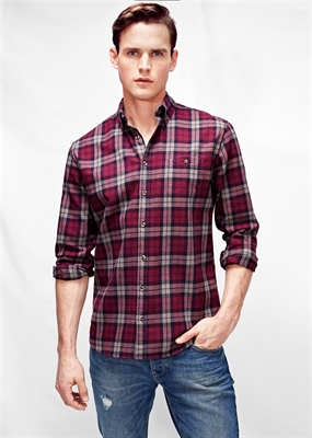 Camisa classic-fit de cuadros en twill de algodón que pertenece a la línea casual. Cuello abotonado, cierre de botones en la parte delantera y bolsillo abotonado en el pecho. Manga larga y puño redondeado con cierre de un botón.