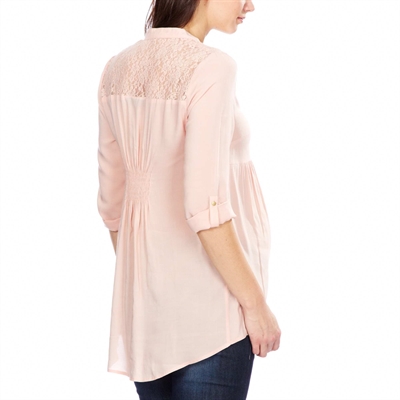 Camisa de estilo romántico con encaje en los hombros y en la espalda, una prenda muy femenina e imprescindible en tu colección de esta temporada. - Cuello panadero - Cierre delantero de botones - Mangas enrollables mediante tapeta de botones - Encaje en los hombros y en la espalda - Con caída detrás - Costura con frunces en el pecho - Bolsillo en el pecho - En la imagen, la modelo lleva una talla 38 y mide 1,77 m.100% viscosaLavable a máquina.
