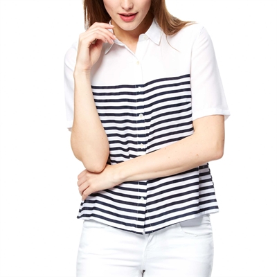 Estampados que evocan el verano. - Camisa de manga corta - Cuello clásico - Cierre delantero con botones nacarados - Largo de espalda: 61 cm aproximadamente. - Nuestra modelo lleva una talla 38 y mide 1,77 m.100% poliesterLavable a máquina.