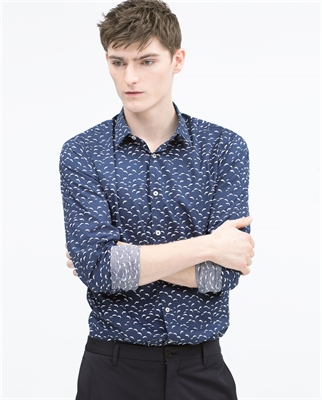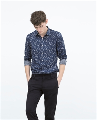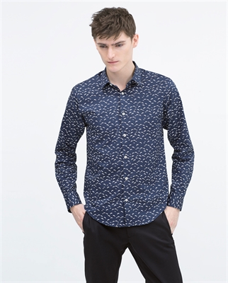 Camisa estampada delfines. Cuello clásico ALTURA MODELO: 190 CM. TALLA L